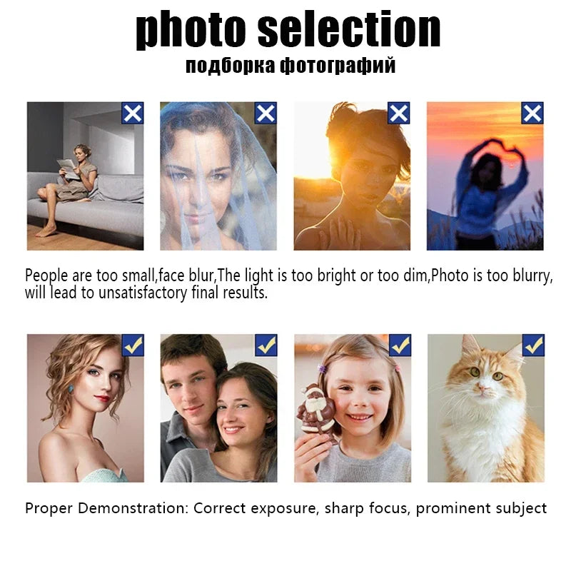 - Attachment: Try to choose a photo with a large face area for a more stunning effect.
